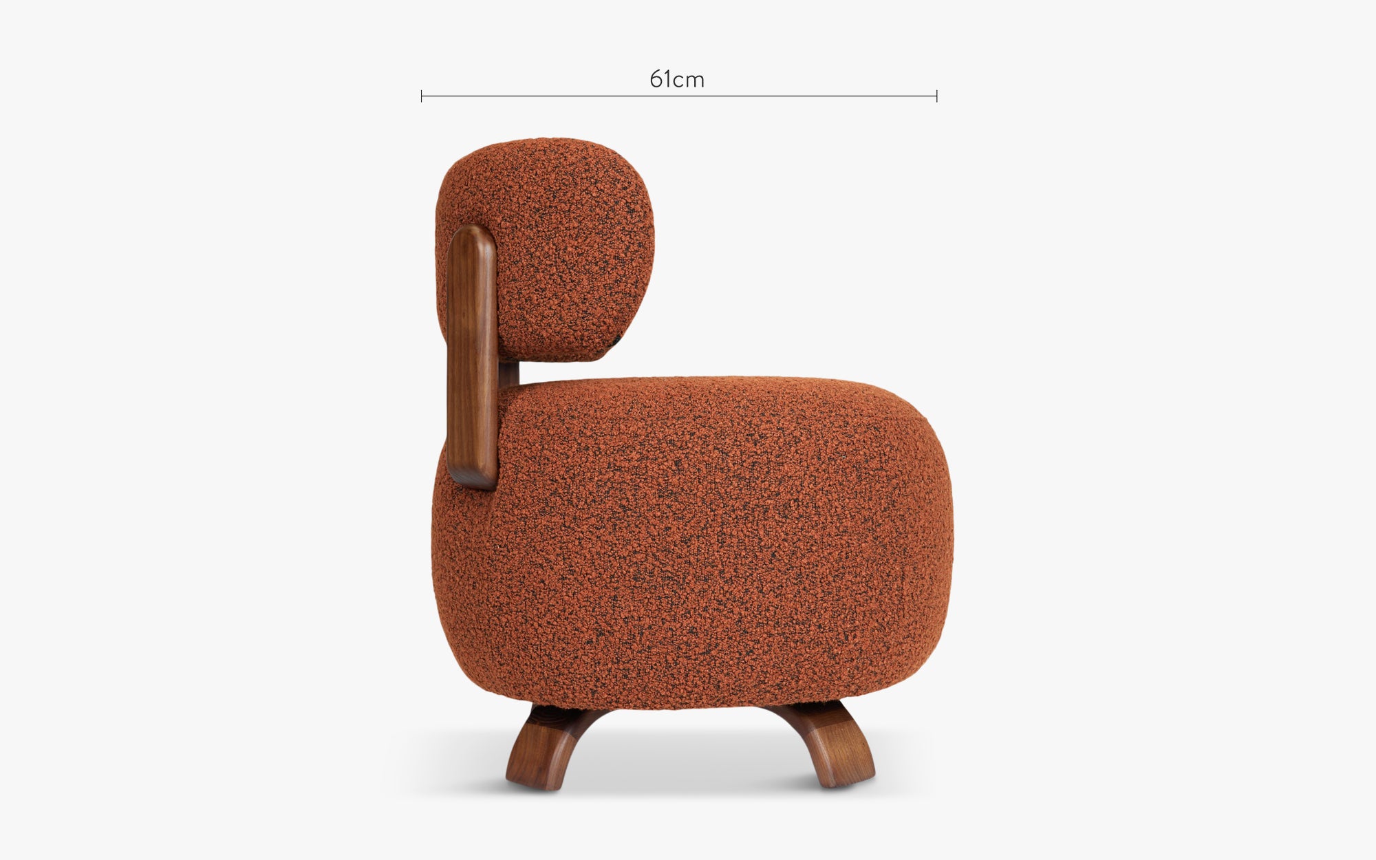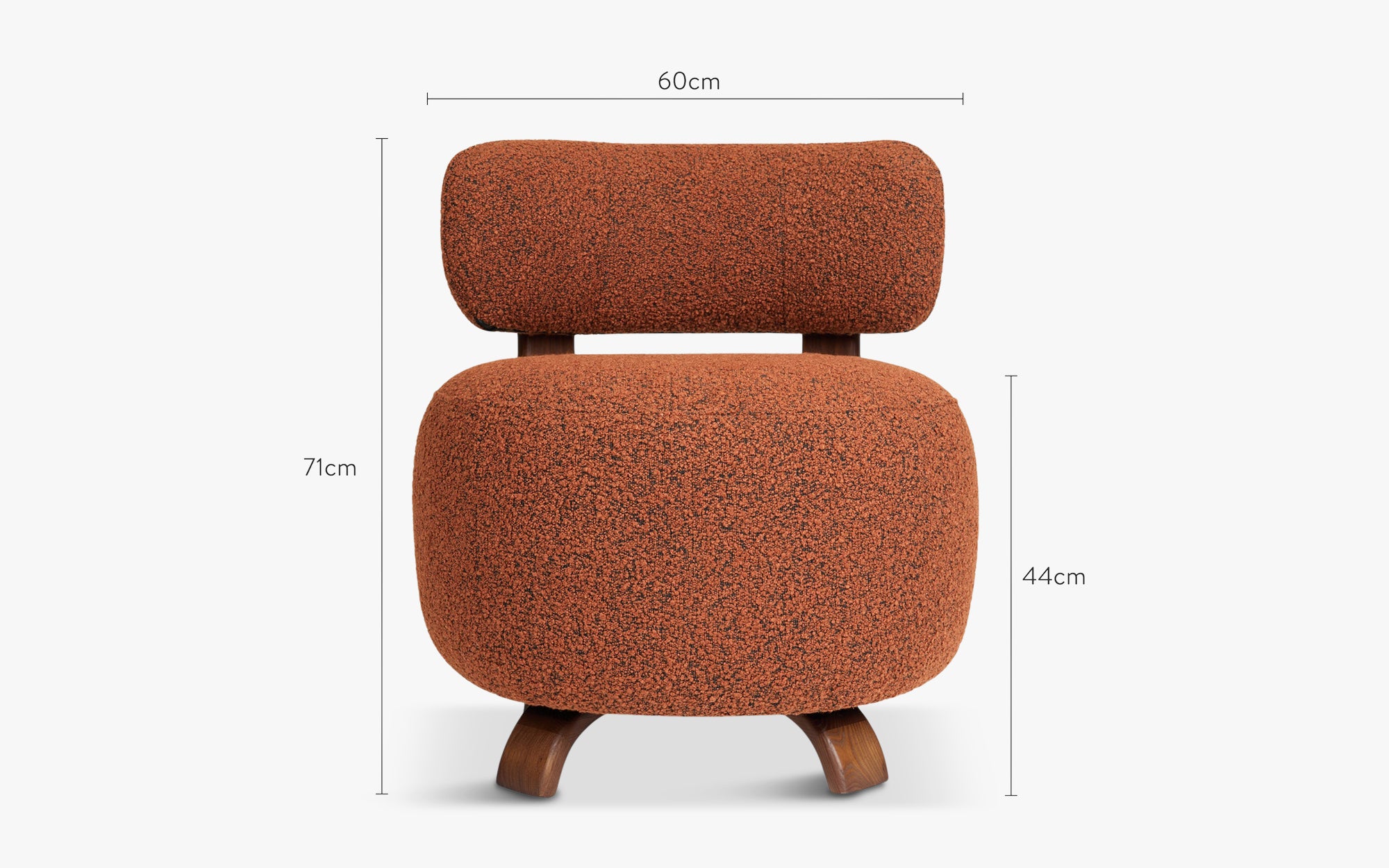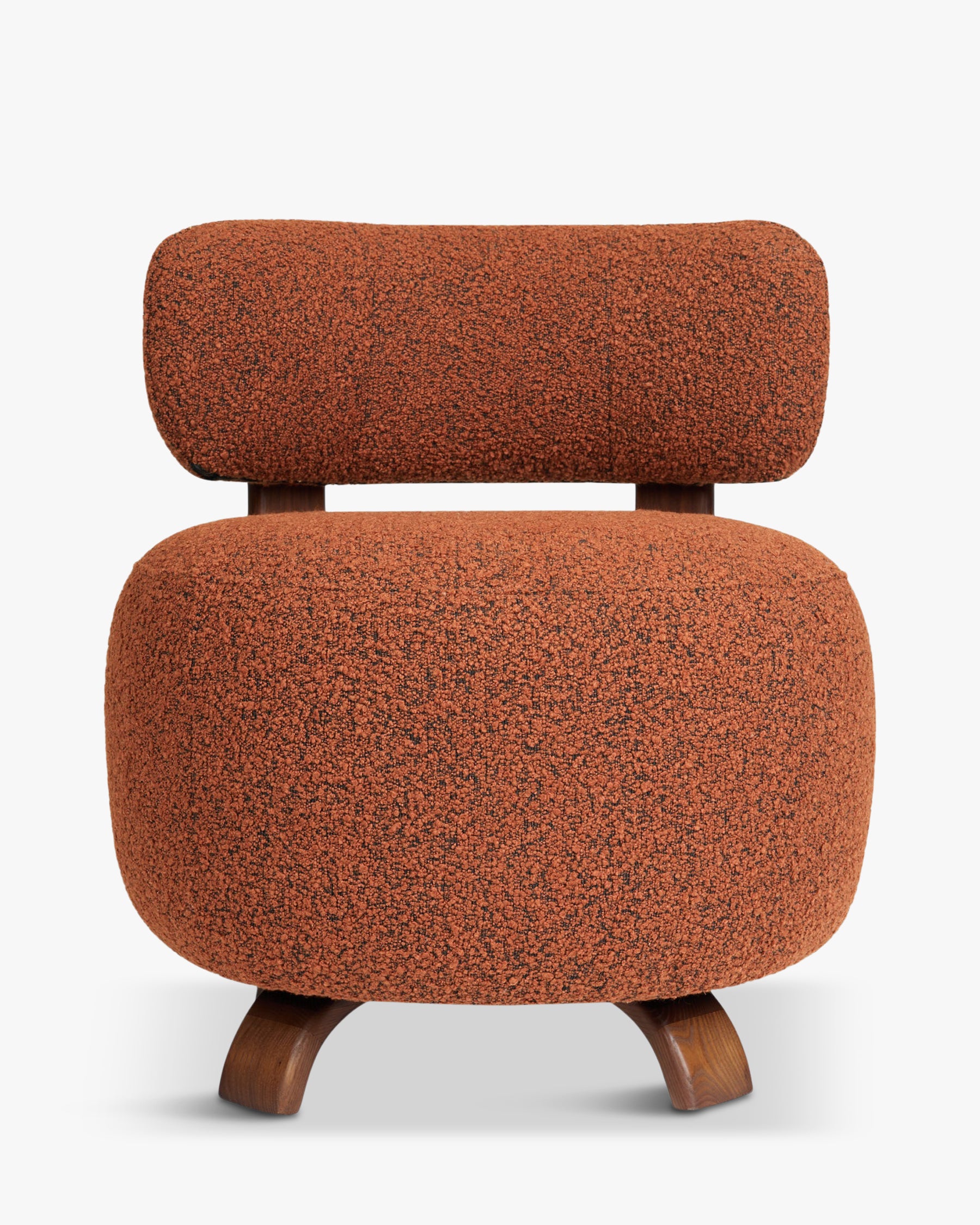 Fauteuil, Rouille bouclé & bois de frêne teinte noyer, Ø60
