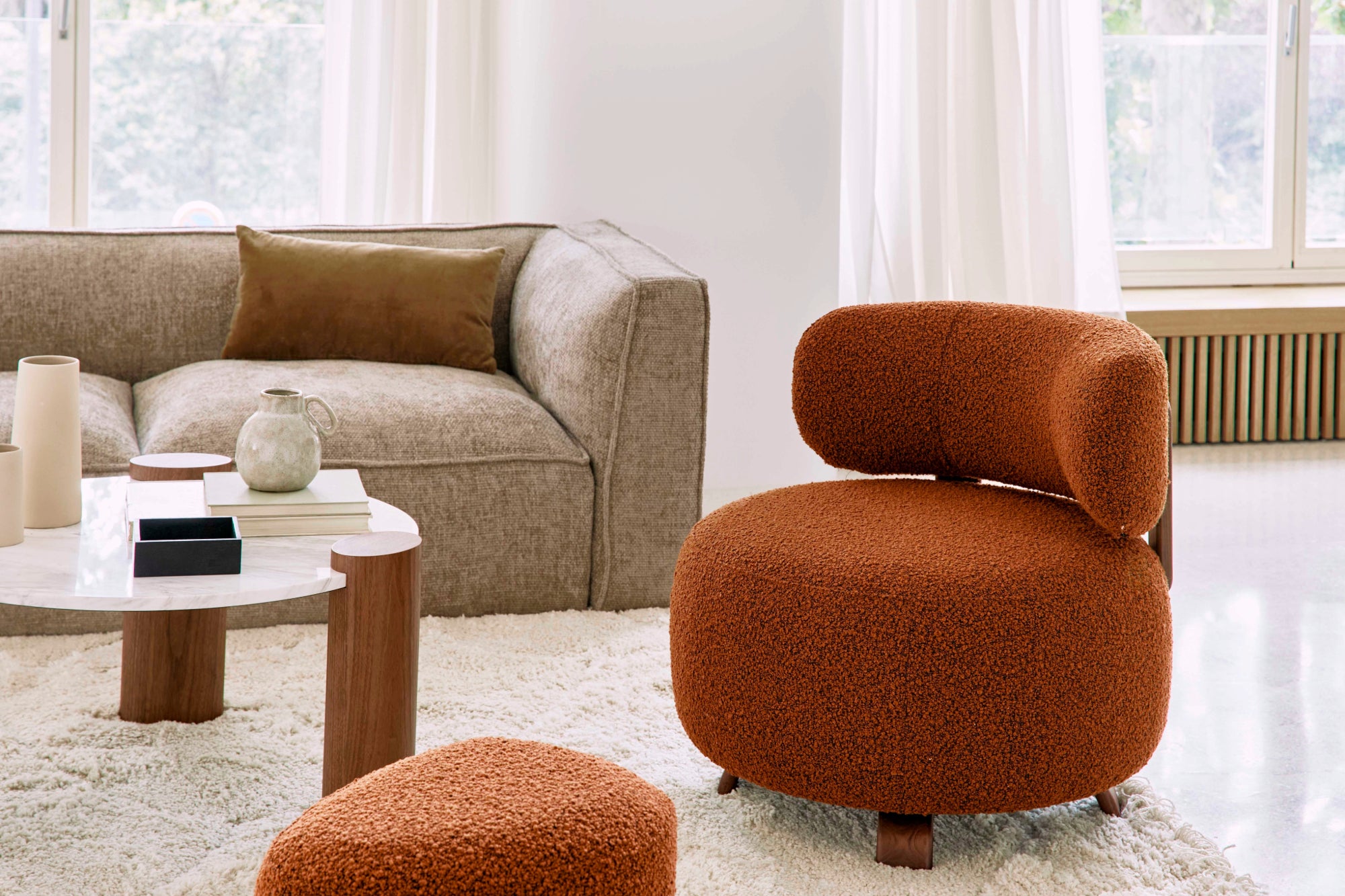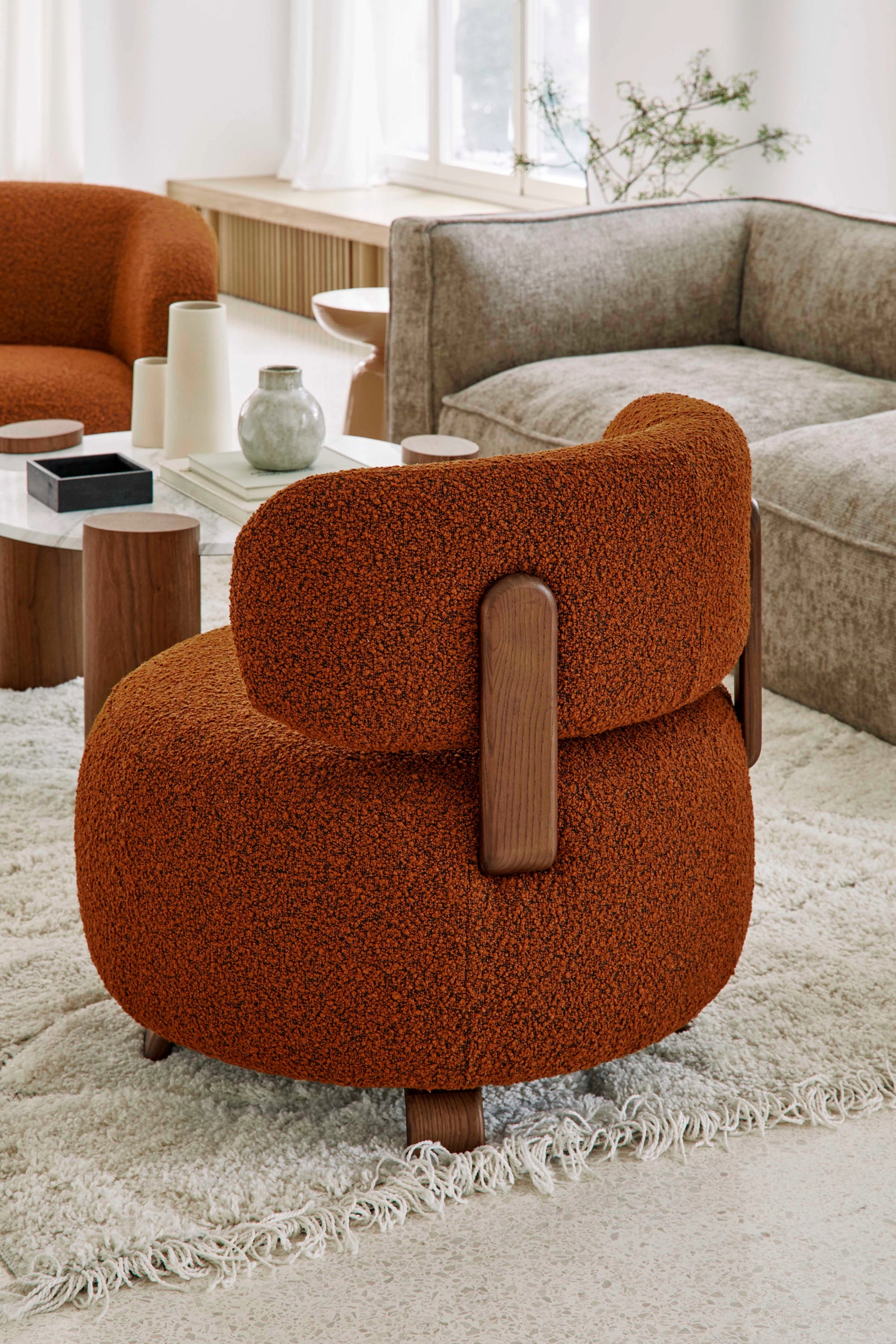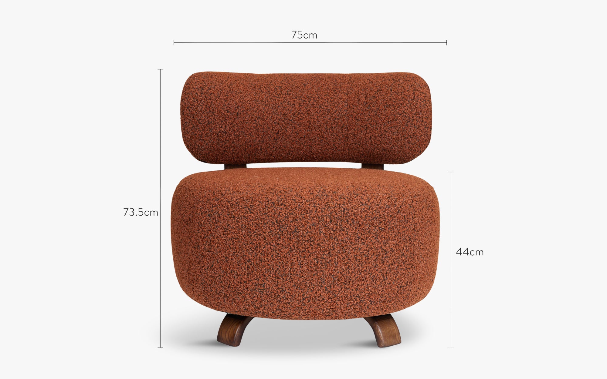 Fauteuil, Rouille bouclé & bois de frêne teinte noyer, Ø75