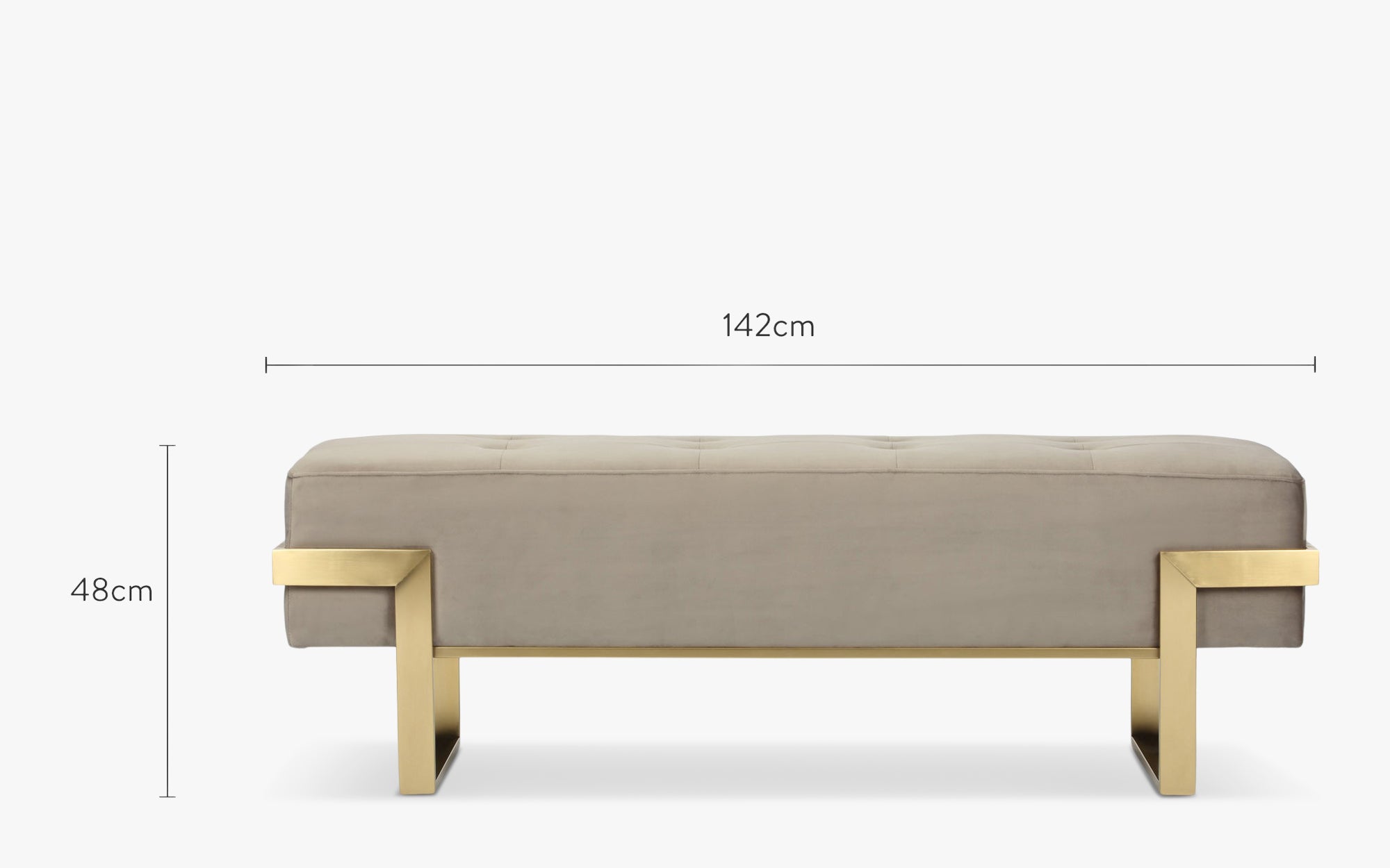 Banc, Velours taupe & métal doré, L143