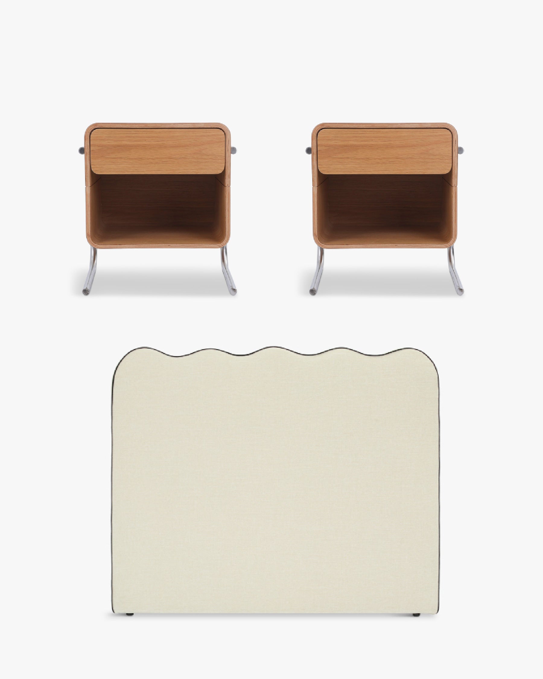La tête de lit ATLANTE se décline en deux finitions textiles qui transforment son impact visuel : un tweed brun au relief chaleureux, parfait pour une ambiance feutrée, et une chenille beige, douce et lumineuse, idéale pour un intérieur plus épuré ou méditerranéen. Le passepoil, volontairement contrasté, vient structurer la pièce sans rompre son harmonie. Robuste et confortable, sa structure tapissée garantit un appui agréable et durable. Facile à intégrer, elle s’accorde aussi bien avec des murs aux teintes chaudes qu’avec des palettes plus douces. Pour un rendu harmonieux, on l’associera à du linge de lit en lin lavé, des tables de chevet aux lignes arrondies, ou encore des suspensions textiles aux formes organiques. La tête de lit ATLANTE devient alors une pièce centrale qui rythme la chambre avec douceur et singularité.