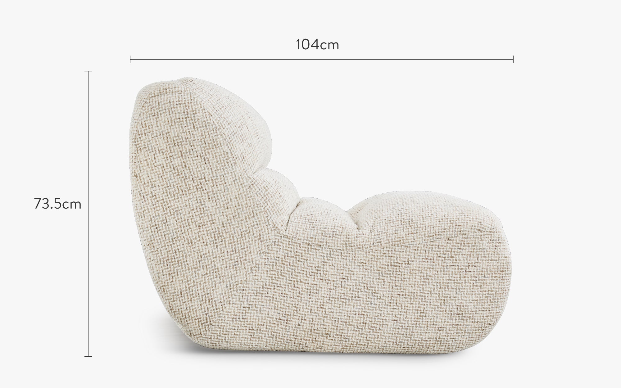 Sa structure souple épouse les formes sans se déformer, garantissant un confort enveloppant idéal pour les espaces réduits comme une chambre d’ami, une mezzanine ou un petit salon.