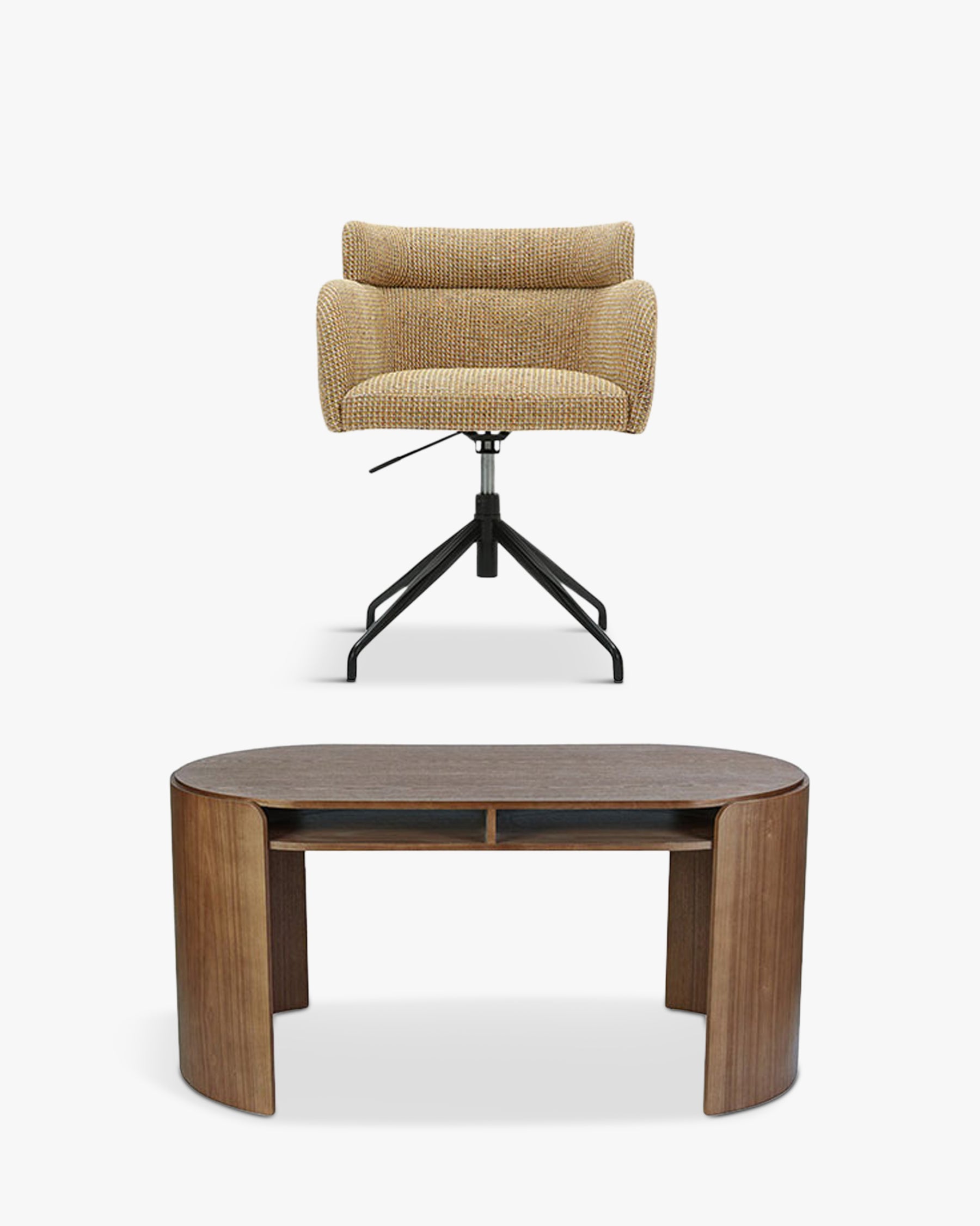 Ensemble chaise rotative + bureau, Tweed jaune Miami + bois noyer