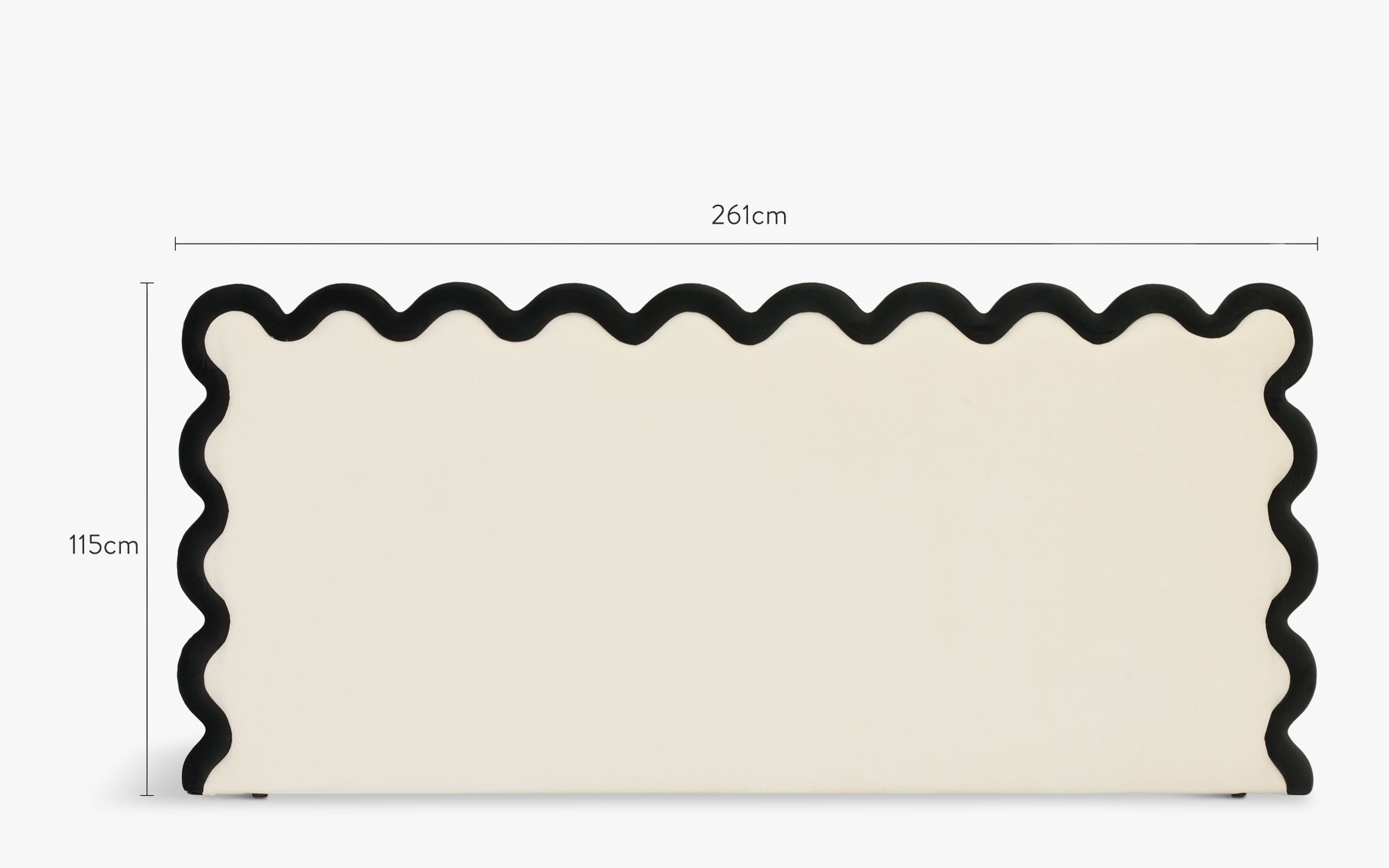 Avec sa silhouette graphique et sa largeur généreuse, la tête de lit ARIA dépasse le simple rôle de dossier pour devenir un véritable fond de scène. Son contour ondulé, affirmé et régulier, joue la carte de la fantaisie maîtrisée. Conçue pour encadrer non seulement le lit mais aussi les tables de chevet de chaque côté, elle structure l’espace nuit comme un ensemble cohérent et enveloppant. La combinaison du peluche écru au centre et du velours noir qui souligne ses courbes dessine un contraste fort et élégant, entre douceur tactile et audace visuelle. Résolument contemporaine, cette tête de lit aux allures sculpturales devient un point d’ancrage visuel, capable de transformer une chambre simple en décor sophistiqué. Un jeu de matières et de volumes maîtrisé : Fabriquée à partir de matériaux soigneusement choisis, cette tête de lit marie la chaleur d’un peluche écru moelleux à la profondeur du velours noir. Son toucher est réconfortant, et son jeu de textures accentue la sensation de confort. Sa largeur hors norme permet d’englober les tables de chevet dans son tracé, renforçant l’unité visuelle et l’aspect personnalisé de l’espace nuit. Pour équilibrer son caractère fort, on peut l’associer à des murs neutres ou au contraire accentuer l’effet théâtral avec un mur sombre. Les tables de chevet peuvent se faire discrètes, en bois clair ou en métal noir, et les luminaires suspendus, comme des globes opalins ou des appliques sculpturales, viendront compléter ce cadre audacieux.