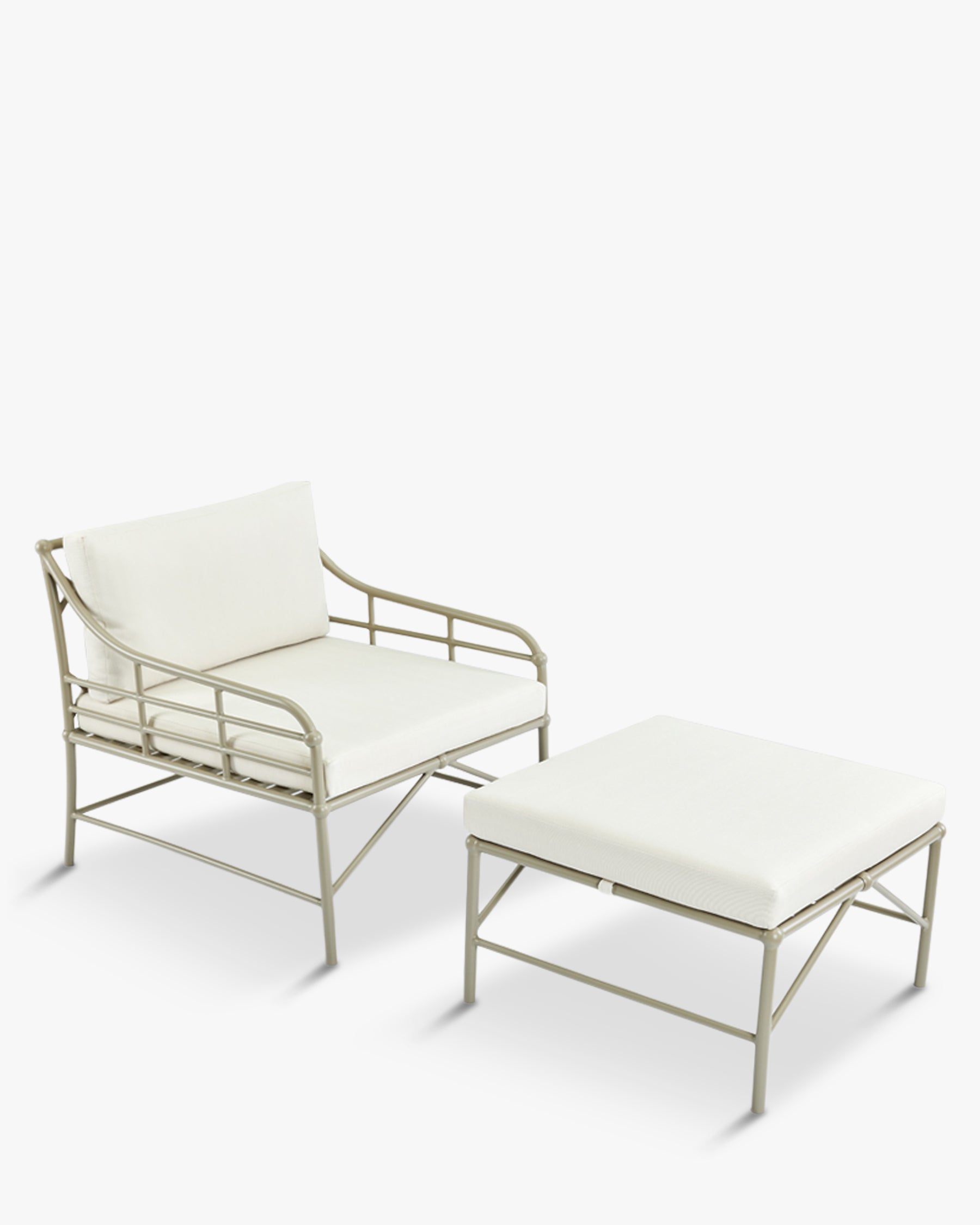 Ensemble fauteuil + pouf de jardin, Métal taupe