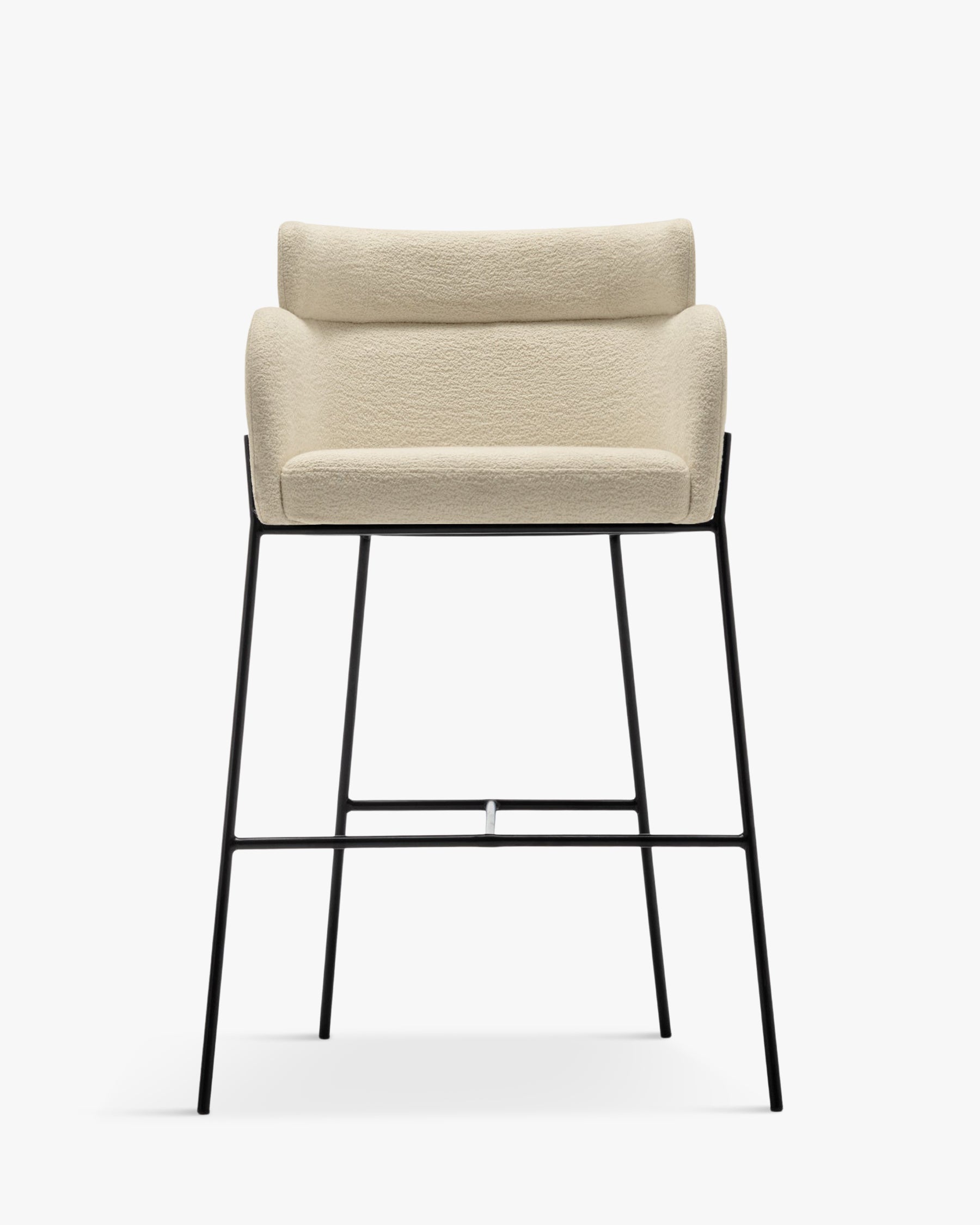 Tabouret de bar, Blanc bouclette & métal noir, H80