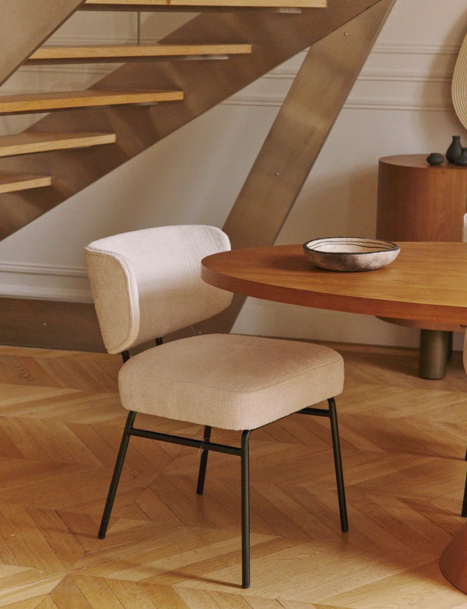 Lire nos conditions de retoursAssise généreuse et dossier enveloppant, la chaise ABBY allie confort et élégance. Idéale autour de la table ou dans le séjour, elle crée un ensemble chaleureux et accueillant.