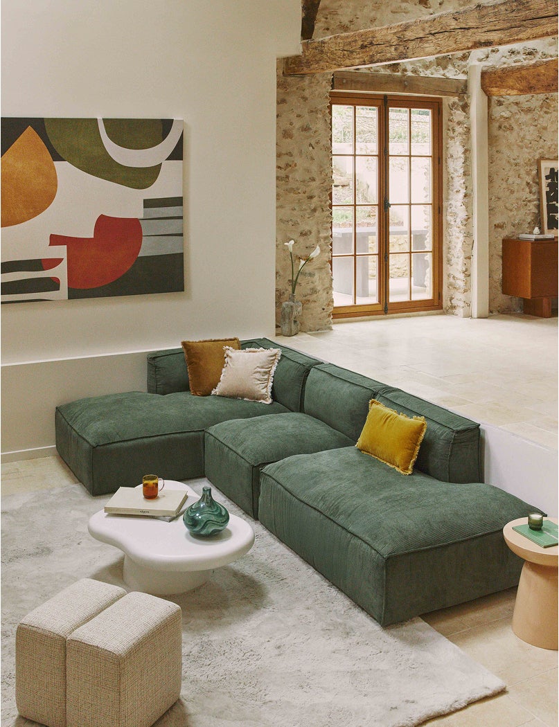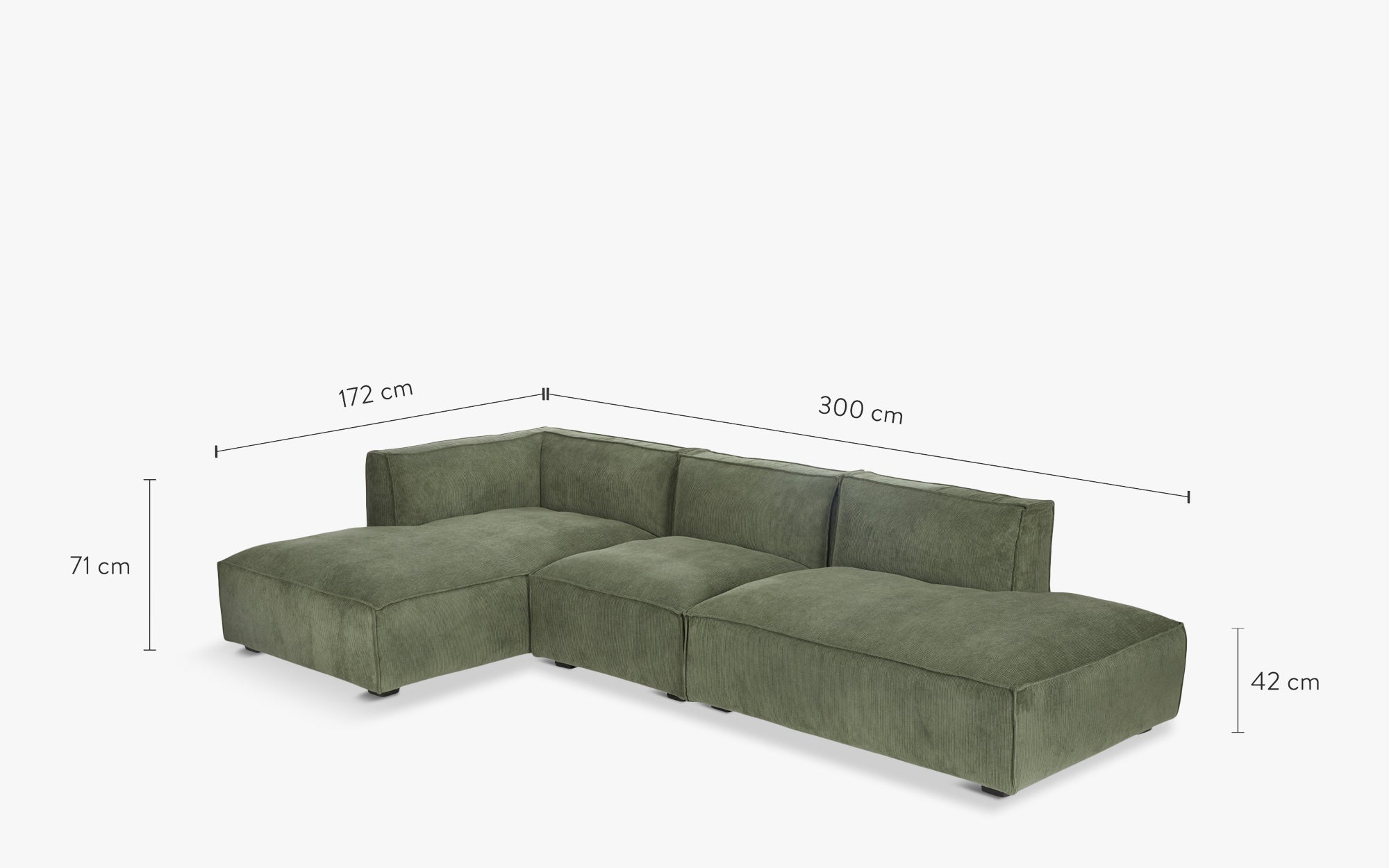 Canapé angle gauche, Velours côtelé vert eucalyptus anti-tâches, L300
