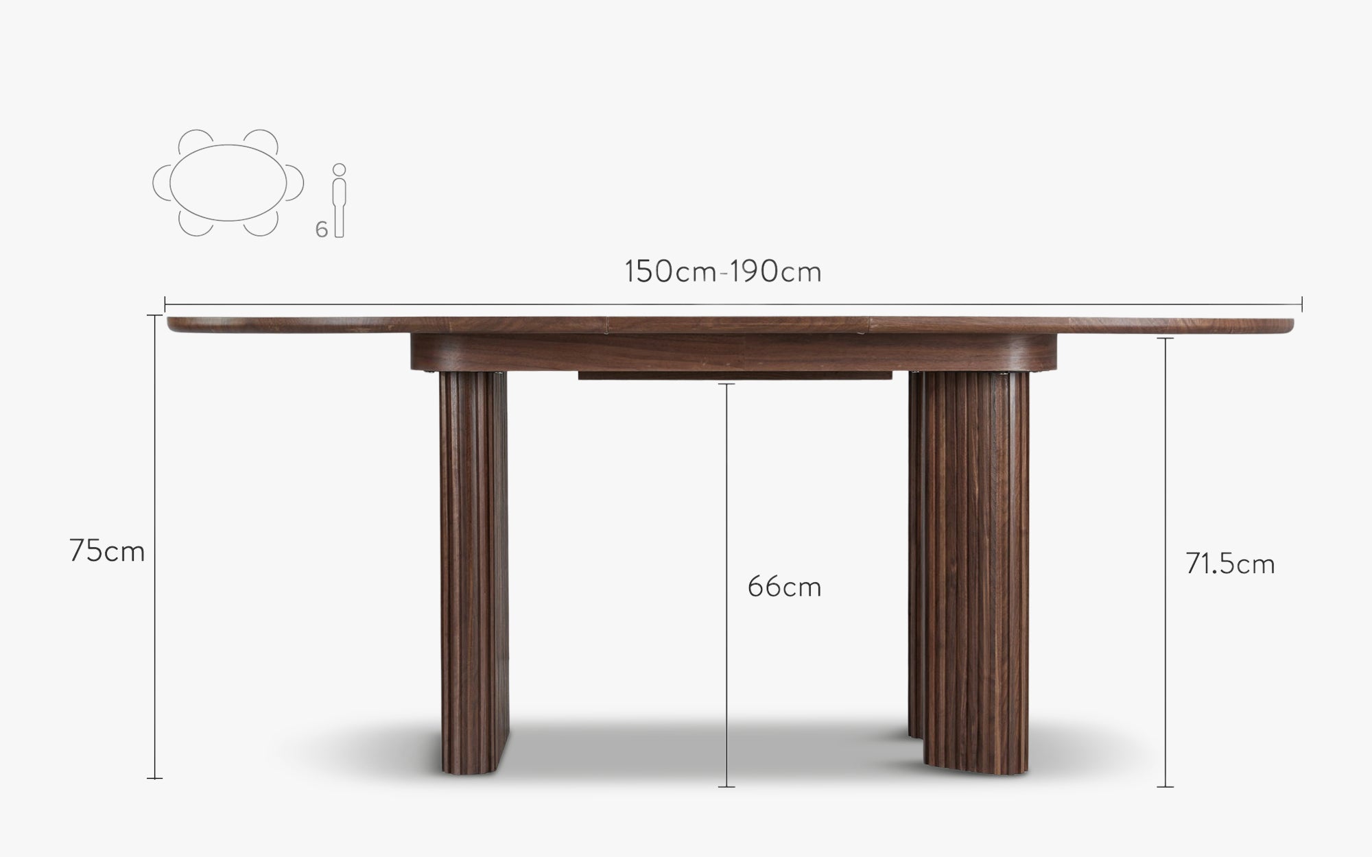 Table à manger extensible, pour 4-6 personnes, Bois de noyer veiné, L150-190