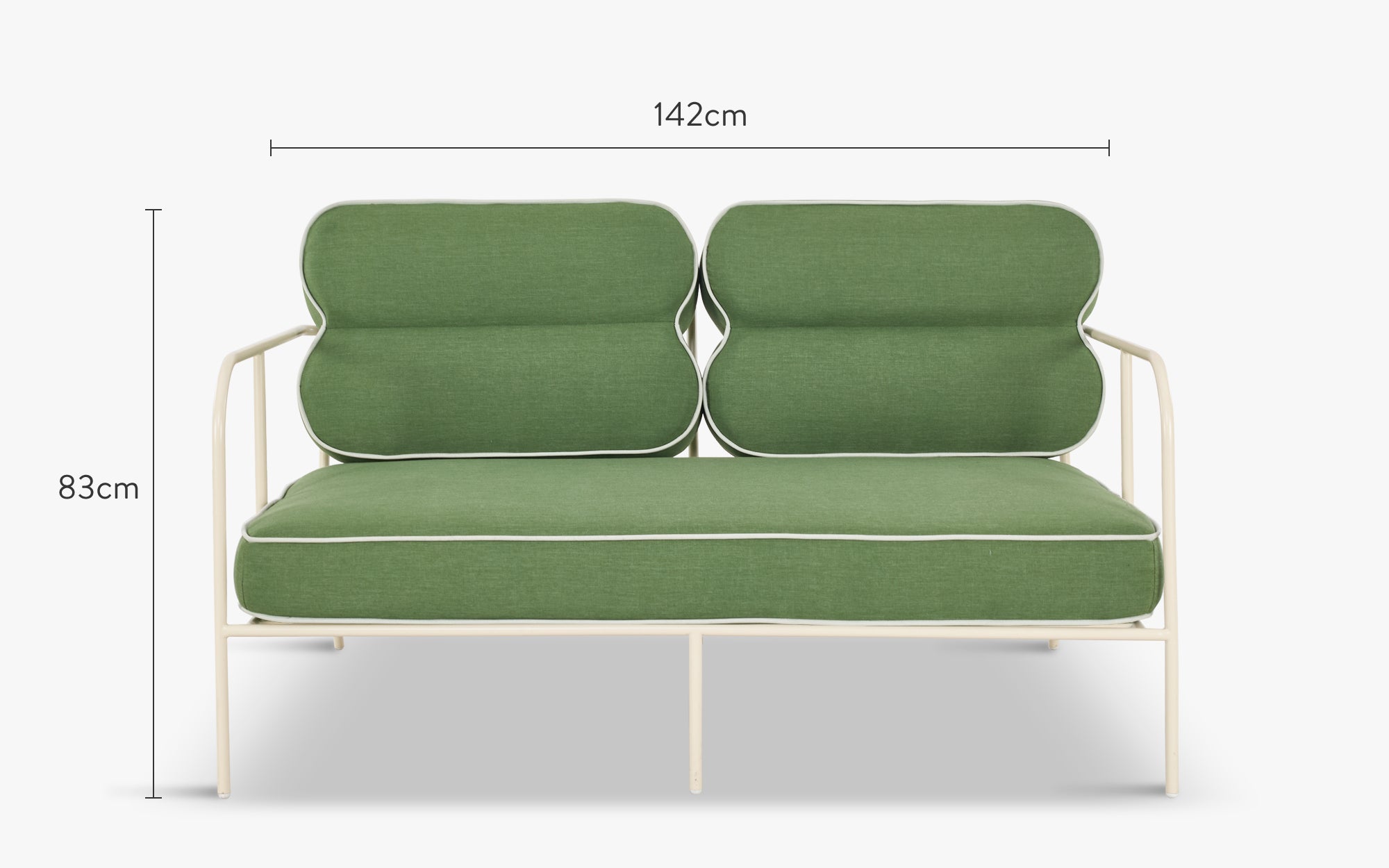 Canapé de jardin 3 places, Vert prairie & métal beige, L145