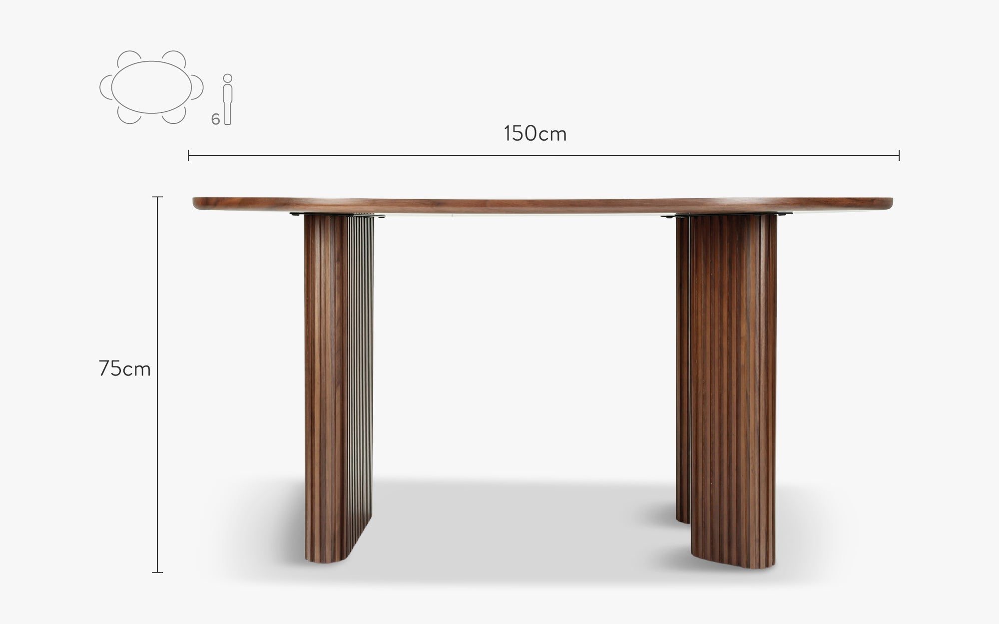 Table à manger, pour 4 personnes, Bois de noyer veiné, L150