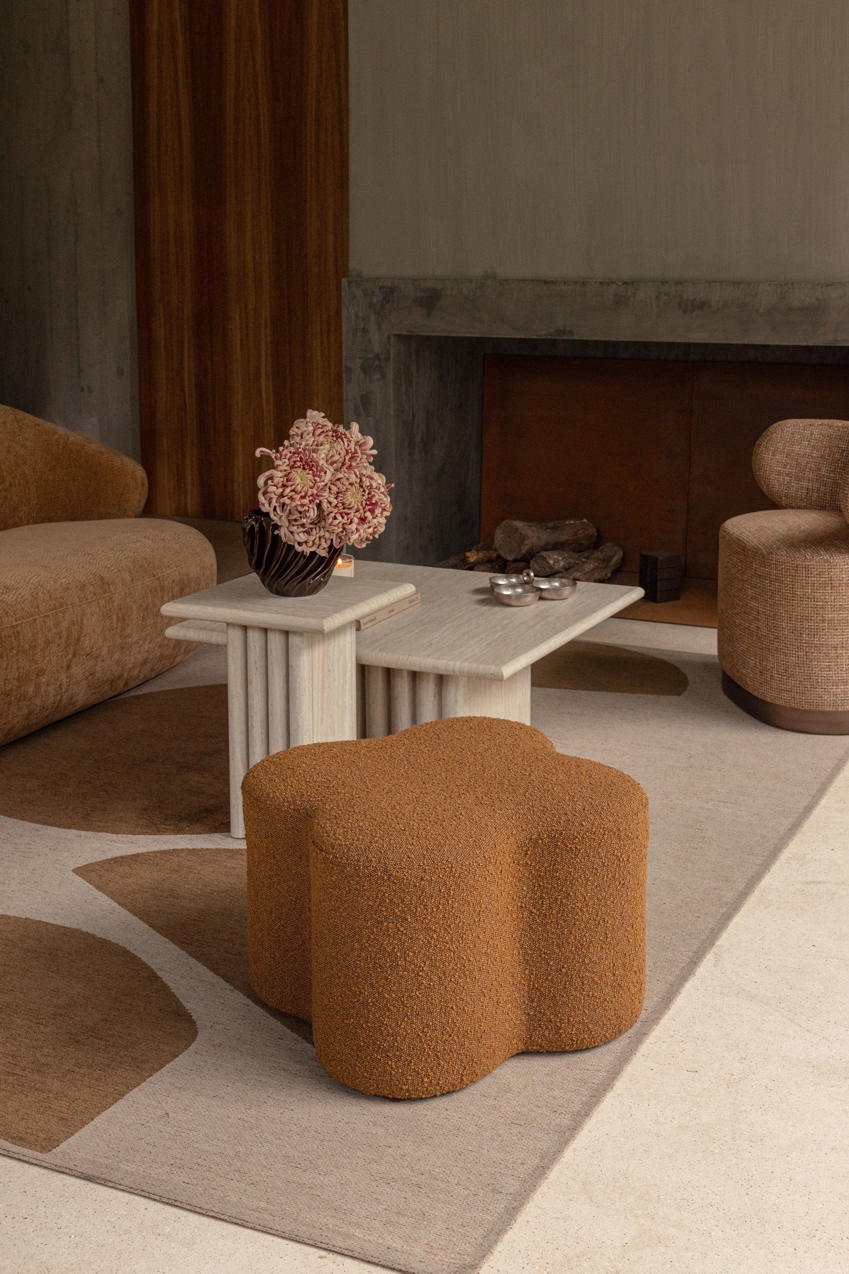 Pouf, Bouclette marron, H40